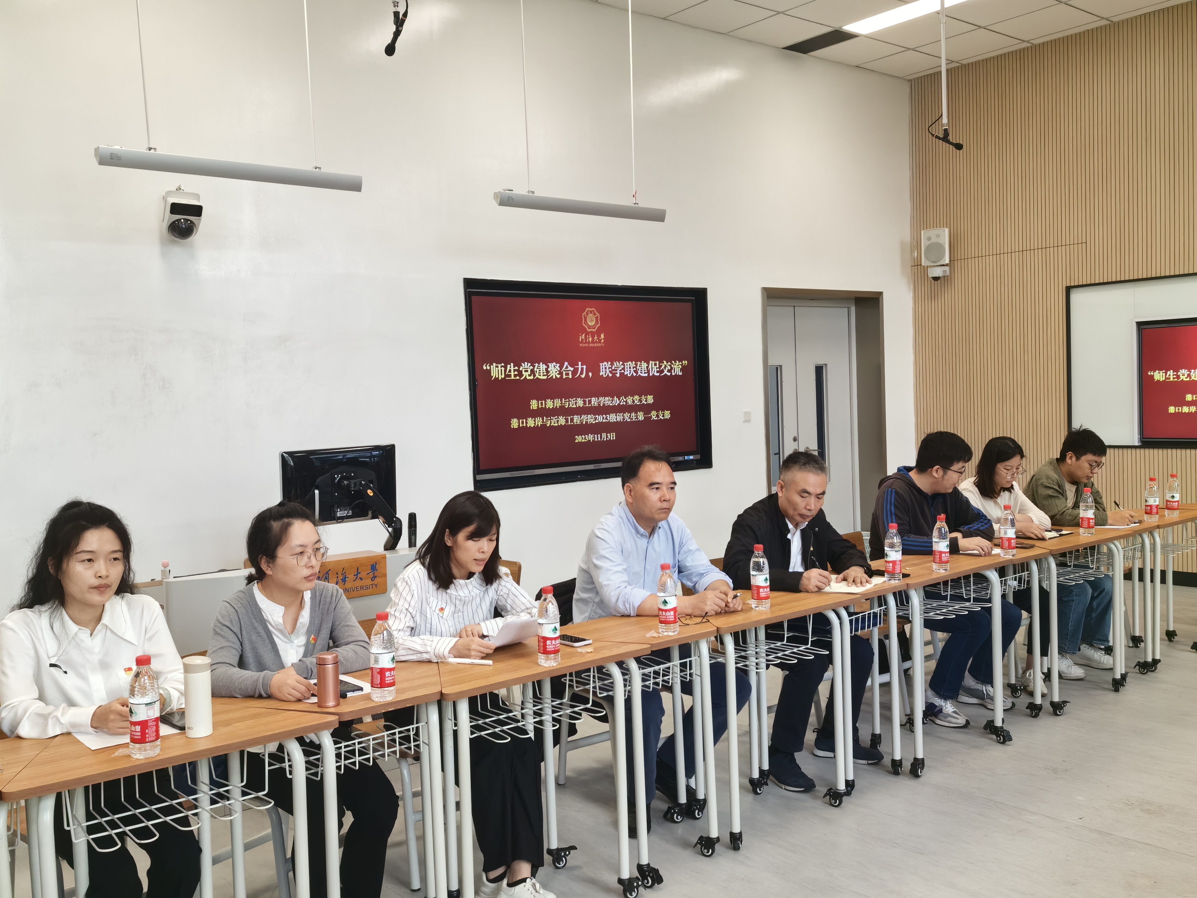 为深化学习贯彻习近平新时代中国特色社会主义思想主题教育学习成效,全面加强党建引领,激发基层党支部活力,2023年11月3日,港航院办公室党支部教师与2023级研究生第一党支部在成人漫 常州校区开展“师生党建聚合力,联学联建促交流”活动。港航院党委书记张俊基、党委副书记沈国军、机关办公室全体教师、2023级研究生第一党支部学生、2022级本科生学生代表参加座谈会。座谈会由办公室党支部书记刘瑶主持。