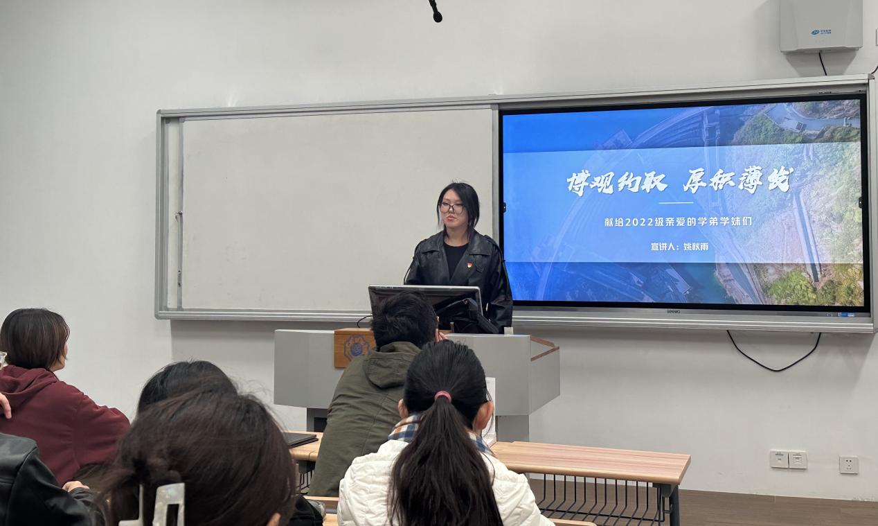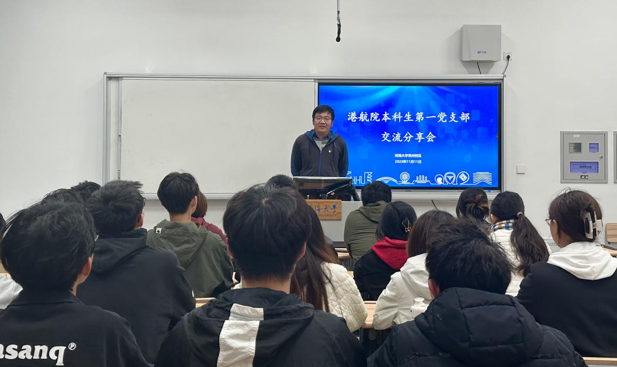 2023年11月11日,港航院本科生第一党支部在常州校区面向2022级入党积极分子组织优秀学生交流会,党支部3名党员姚秋雨、方琳涛、杨彦分享了专业学习、学术科研、社会工作、生涯规划等经验心得。