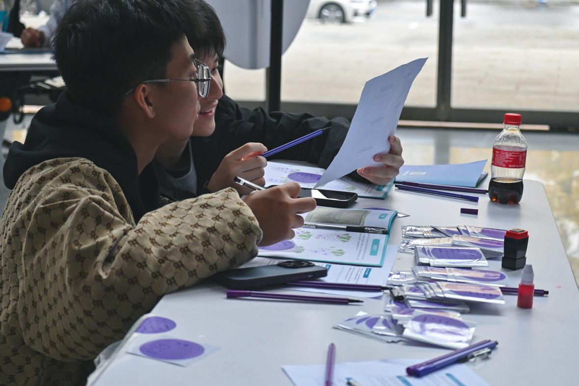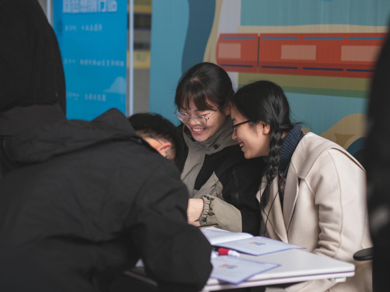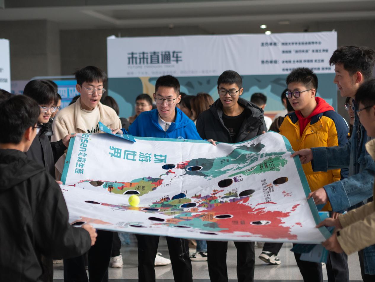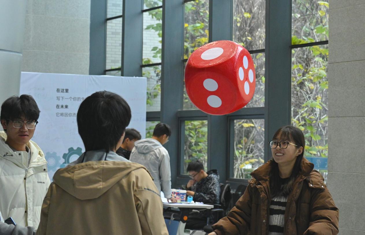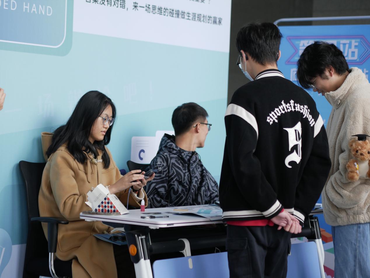 在活动起点区,同学们有序领取生涯嘉年华手册,接着便来到了活动体验区,活动区共设置4大区域,11个关卡。