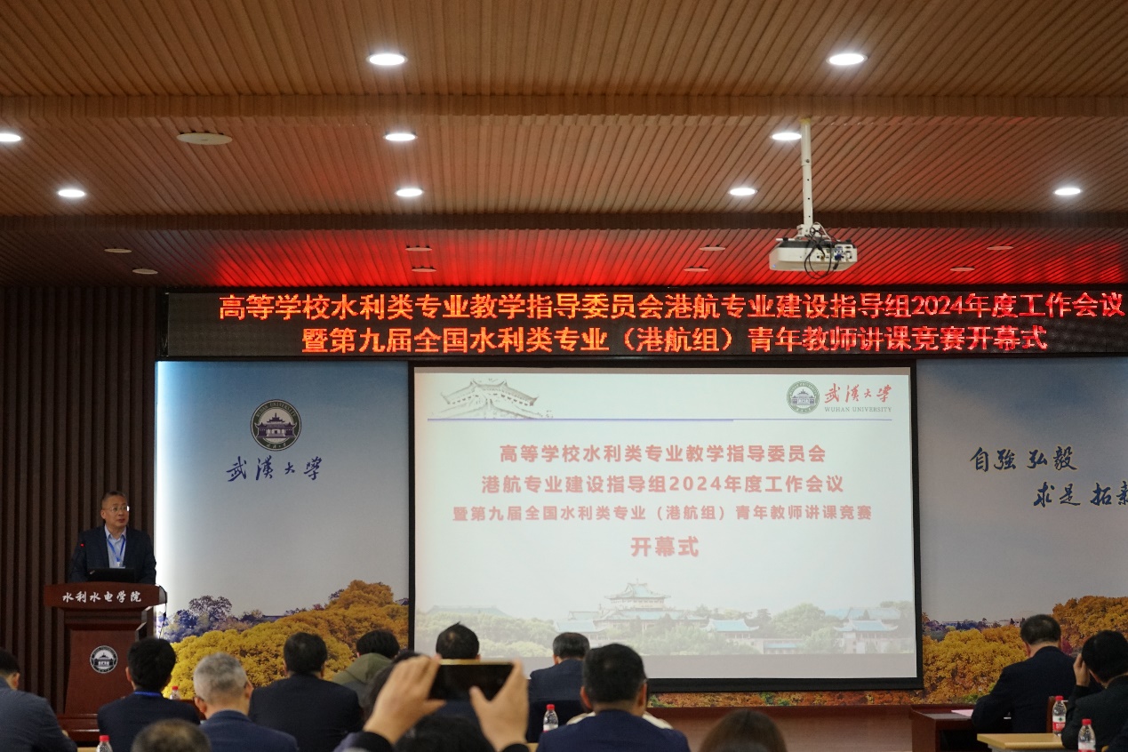 2024年3月23日,全国高等学校水利专业教学指导委员会港口航道与海岸工程专业建设指导组年度工作会议暨第九届水利类专业(港航组)青年教师讲课竞赛在武汉大学顺利举行,来自全国33所高校及2家出版社的百位余名专家学者和青年教师代表齐聚一堂,为师资队伍建设和人才培养出谋划策。武汉大学校党委副书记屈文谦教授,水利类专业教学指导委员会港航专业组组长、成人漫 副校长郑金海教授出席开幕式并致辞,武汉大学水利水电学院副院长夏军强教授主持开幕式,水利类专业教学指导委员会港航专业组秘书长、成人漫 成人漫 副院长张蔚教授主持2024年度工作会议。