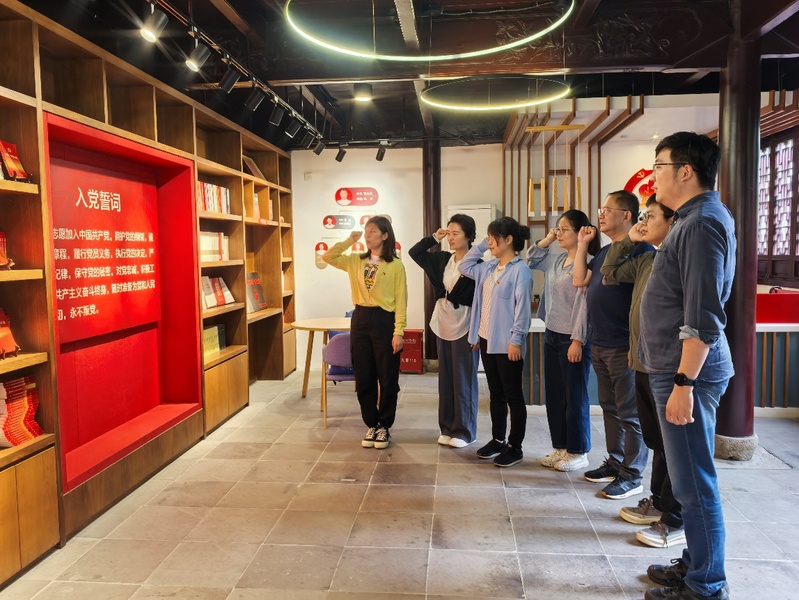 支部党员接着参观张应春革命事迹陈列馆。馆内陈列详细回顾了张应春同志波澜壮阔的革命生涯,党员们深深被其英勇坚韧和无私奉献的精神动容,纷纷表示要继承和发扬张应春烈士的革命精神。随后,全体党员重温了入党誓词,“我志愿加入中国共产党,拥护党的纲领,遵守党的章程……”,句句铿锵有力的入党誓词,更加坚定了全体党员“不忘初心、牢记使命”的政治信念。