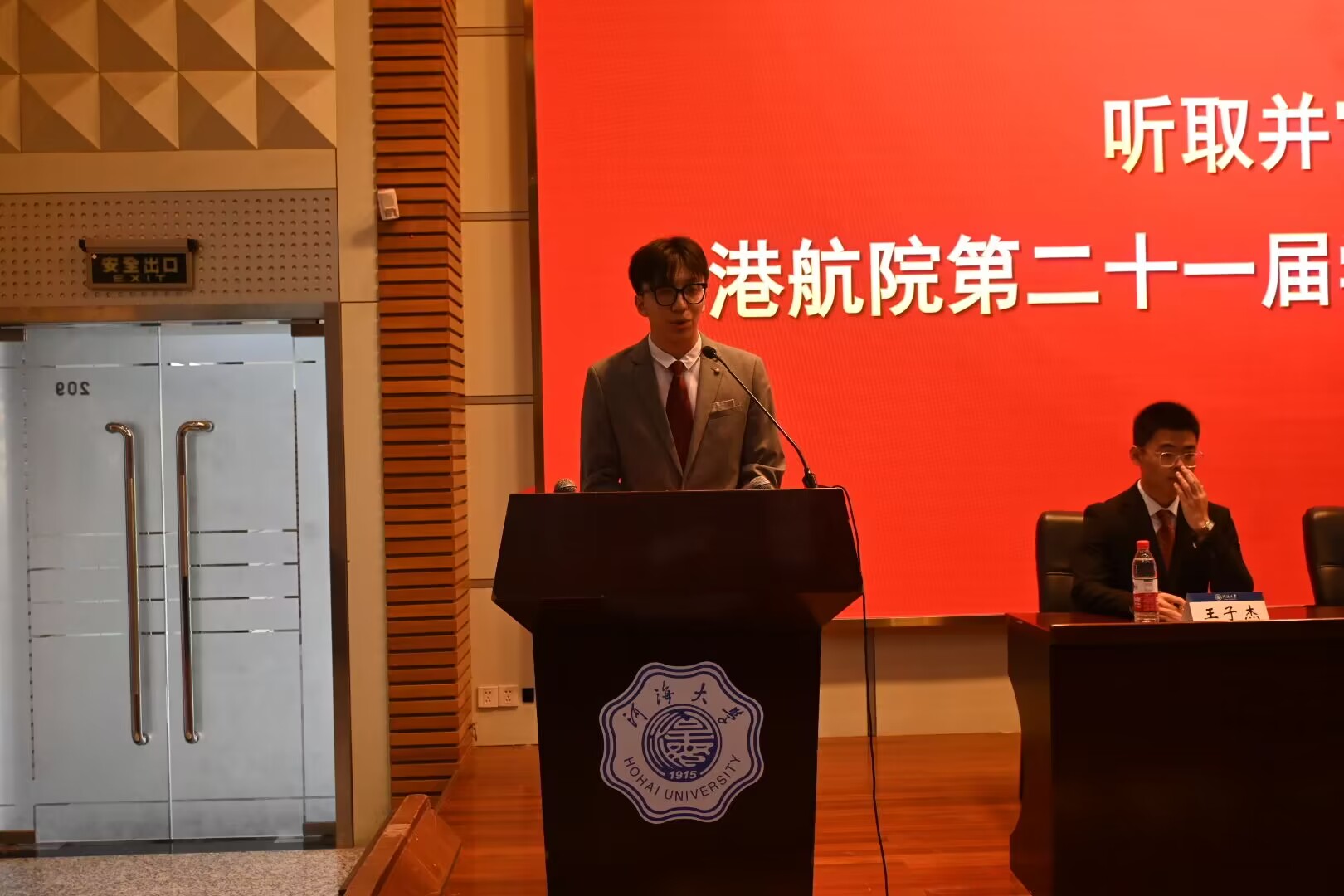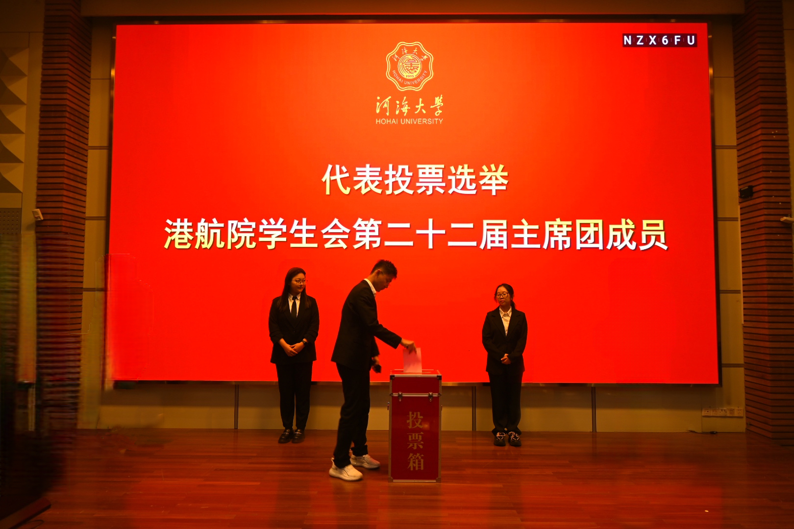 在大会第二阶段,现场代表审议并通过了《港航院学生会章程修正案(草案)》。随后港航院学生会第二十二届主席团候选人王子杰、罗良龙、徐绍凯、魏翔宇四位候选人进行了竞选演讲。代表们投票选举出王子杰,魏翔宇作为港航院学生会第二十二届主席团成员。随后进行了部长团候选人竞选演讲,全体代表现场投票后,选举结果将综合学生业务素质考核、组织评议及选票情况最终决定。