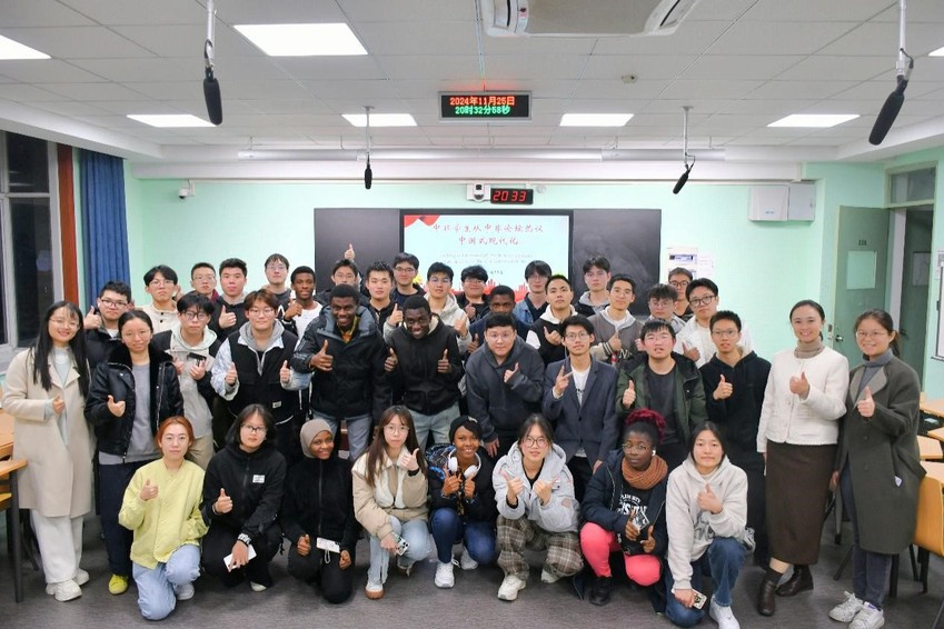 11月25日晚,成人漫 22级港航4班全体同学与8位22级加纳班留学生联合开展主题为“中非学生从中非论坛热议中国式现代化”的交流活动。成人漫 党委副书记王玲出席并讲授主题思政课,相关班级班导师、辅导员参加活动。