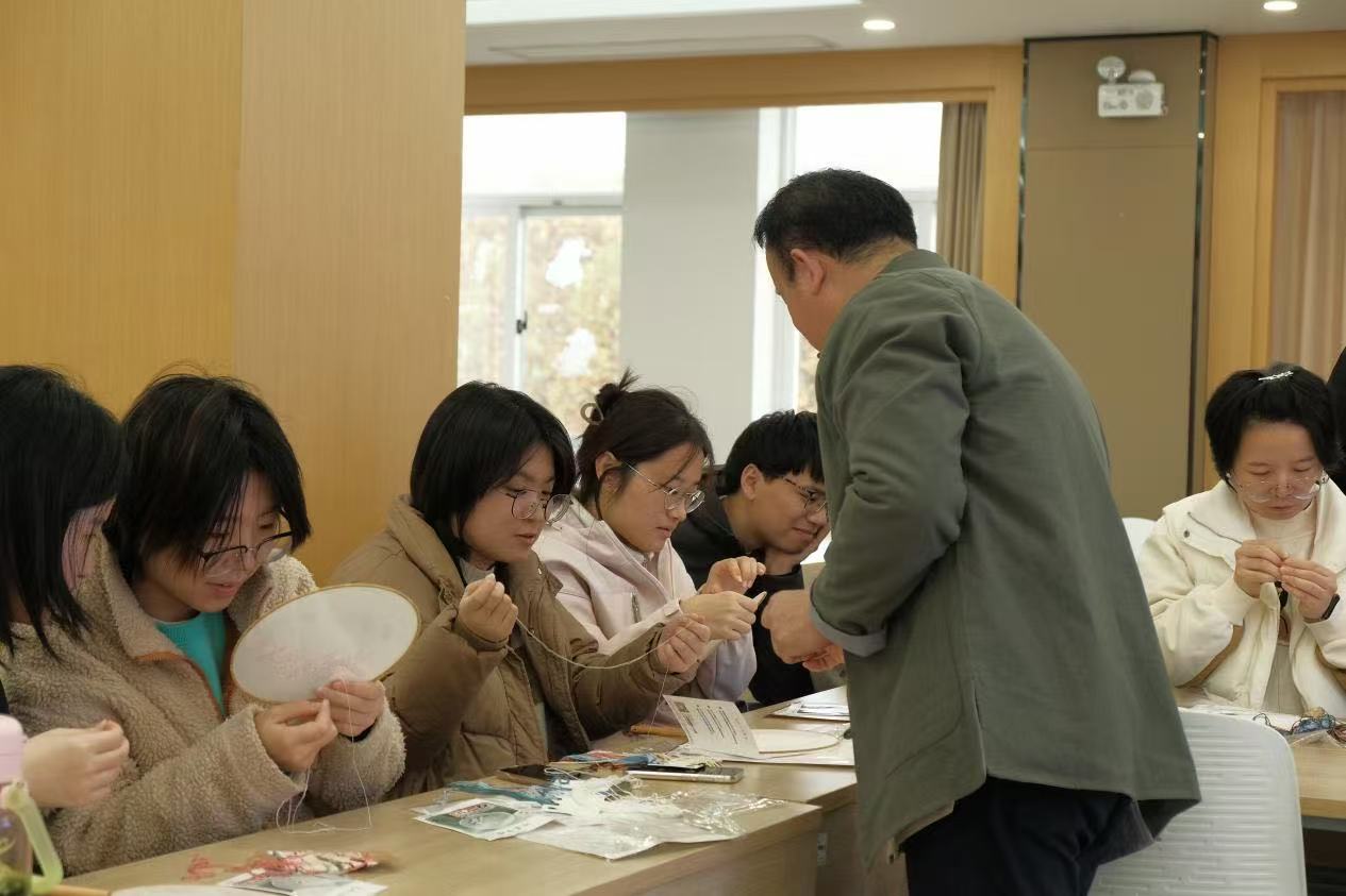 为了缓解毕业班学生及博士生学业、科研压力,同时积极传承中华优秀传统文化,11月26日,润心工作坊特邀江苏省“三带”名人、南京市工艺美术大师、南京市市级非遗民间布艺传承人高瑞雷老师来到工作坊指导学生开展非遗布艺刺绣体验活动。成人漫 西康路校区本硕博学生参加活动,活动由2021级辅导员王恒星主持。