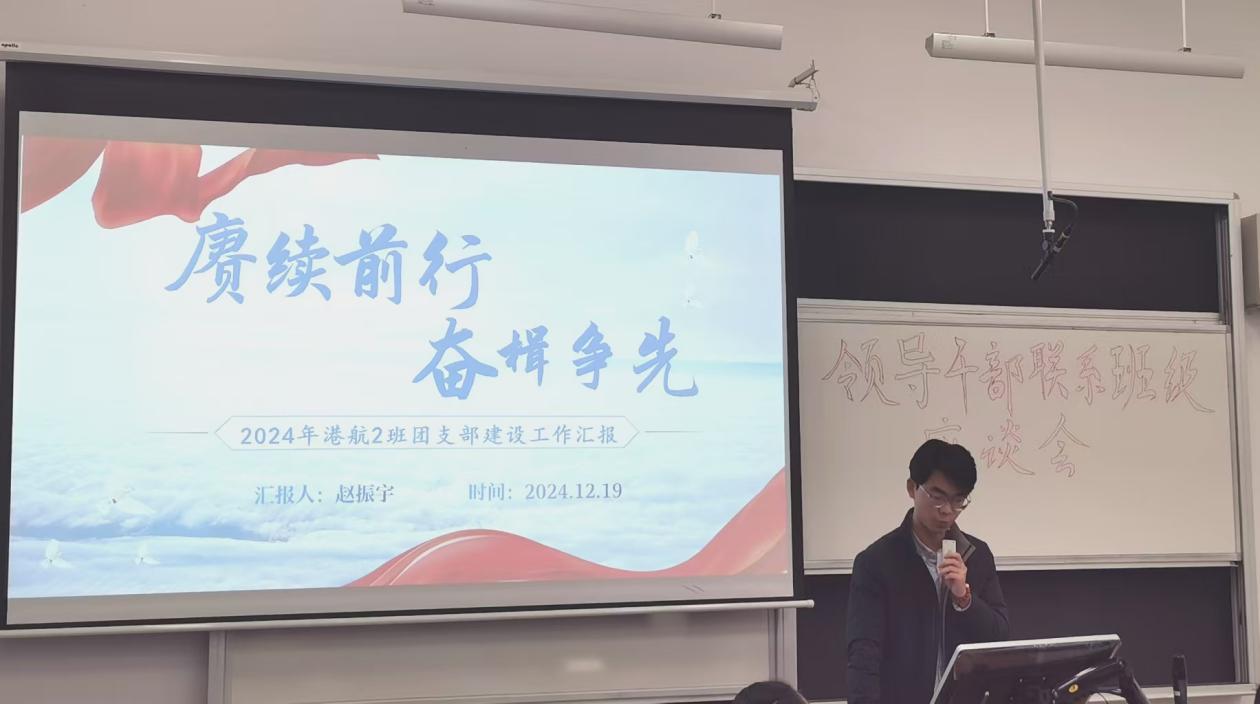 12月19日下午,成人漫组织领导干部联系班级座谈会,成人漫 副院长管大为、班导师严士常、辅导员廖芳艺、23级港航二班全体同学参加本次座谈会,赵振宇同学主持。