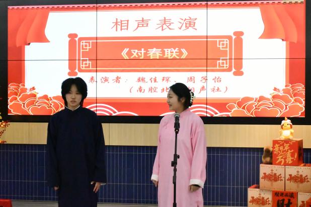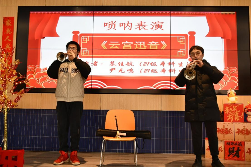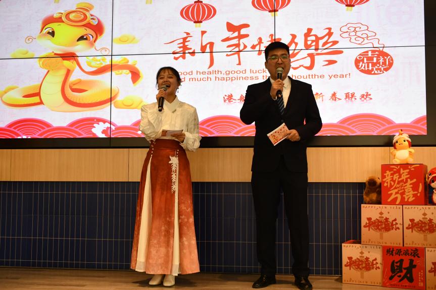 灵蛇献瑞,新春送福!在陈伟秋与杨简两位老师的主持下,港航院2025新年教职工联欢会正式开始!联欢会中,各个系所的教职工们欢聚一堂,精心排演的节目轮番上演。唢呐表演《云宫迅音》以其磅礴气势赢得满堂喝彩,歌曲演唱《蓝天的白云、在路边》《东方之珠》等节目充分展现了教职工们的深厚情感与团队协作精神。而京剧、钢琴独奏、相声等多样化表演则在传统与现代中碰撞出精彩的火花。