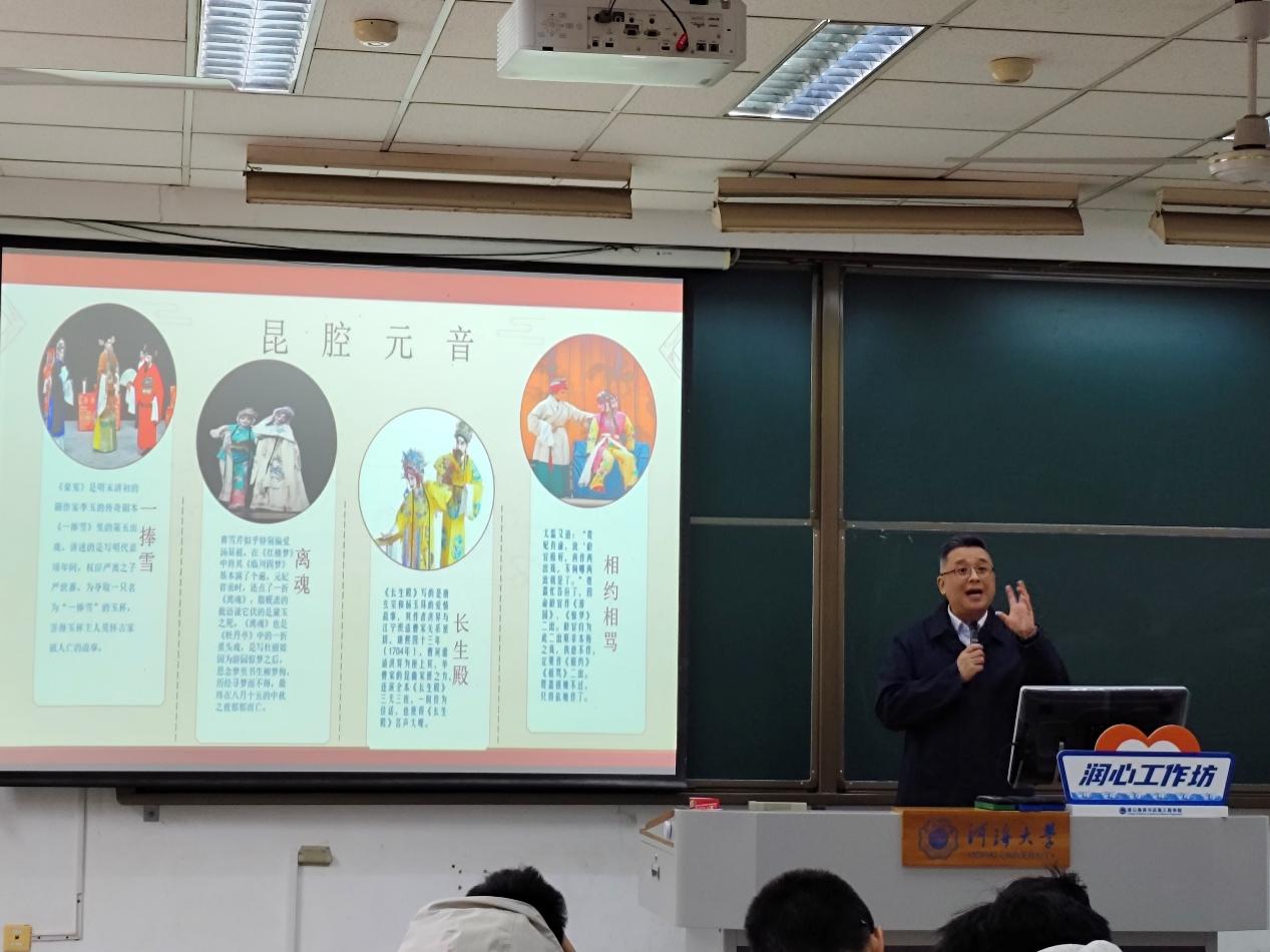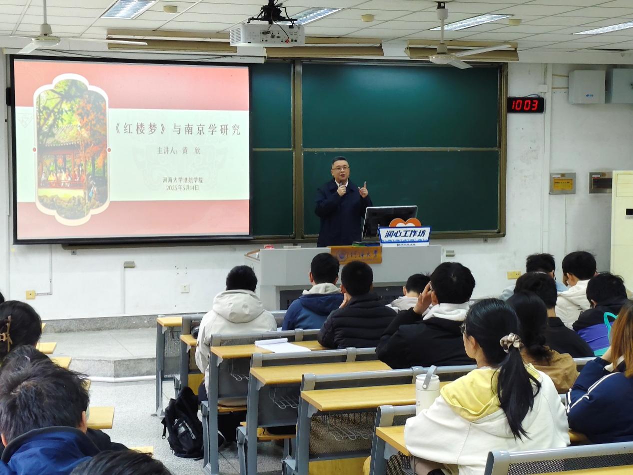 近日,港航院在江宁校区致用楼117举行“润心工作坊”第4期活动,邀请江苏省秦淮河水利工程处副研究员黄欣为同学们讲授“《红楼梦》与南京学研究”讲座,2022级、2024级学生参加。
