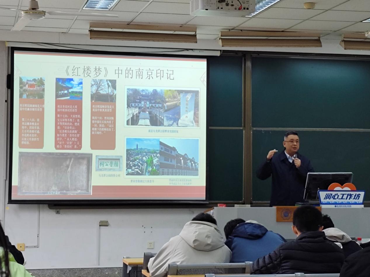 本次润心工作坊聚焦《红楼梦》与南京的风土人情,通过丰富多彩的素材与深入浅出的讲解,带领同学们品味南京这座六朝古都的文化底蕴,拓宽了学生视野,提升了学术氛围,帮助同学们在学习之余品读中华优秀传统文化,以中华文化瑰宝之美滋润学生心田。
