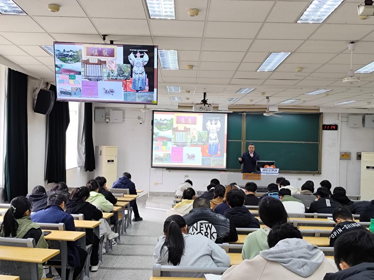 黄欣老师是江苏省红楼梦学会会员、南京学研究会理事,出版多部相关著作,长期致力于水文化研究与水情教育活动。本次讲座中,黄欣老师从建筑、服饰、美食和音乐四个方面向同学们讲述《红楼梦》与南京城的历史关联,带领同学们在红楼梦的世界里了解更有韵味的南京古城。