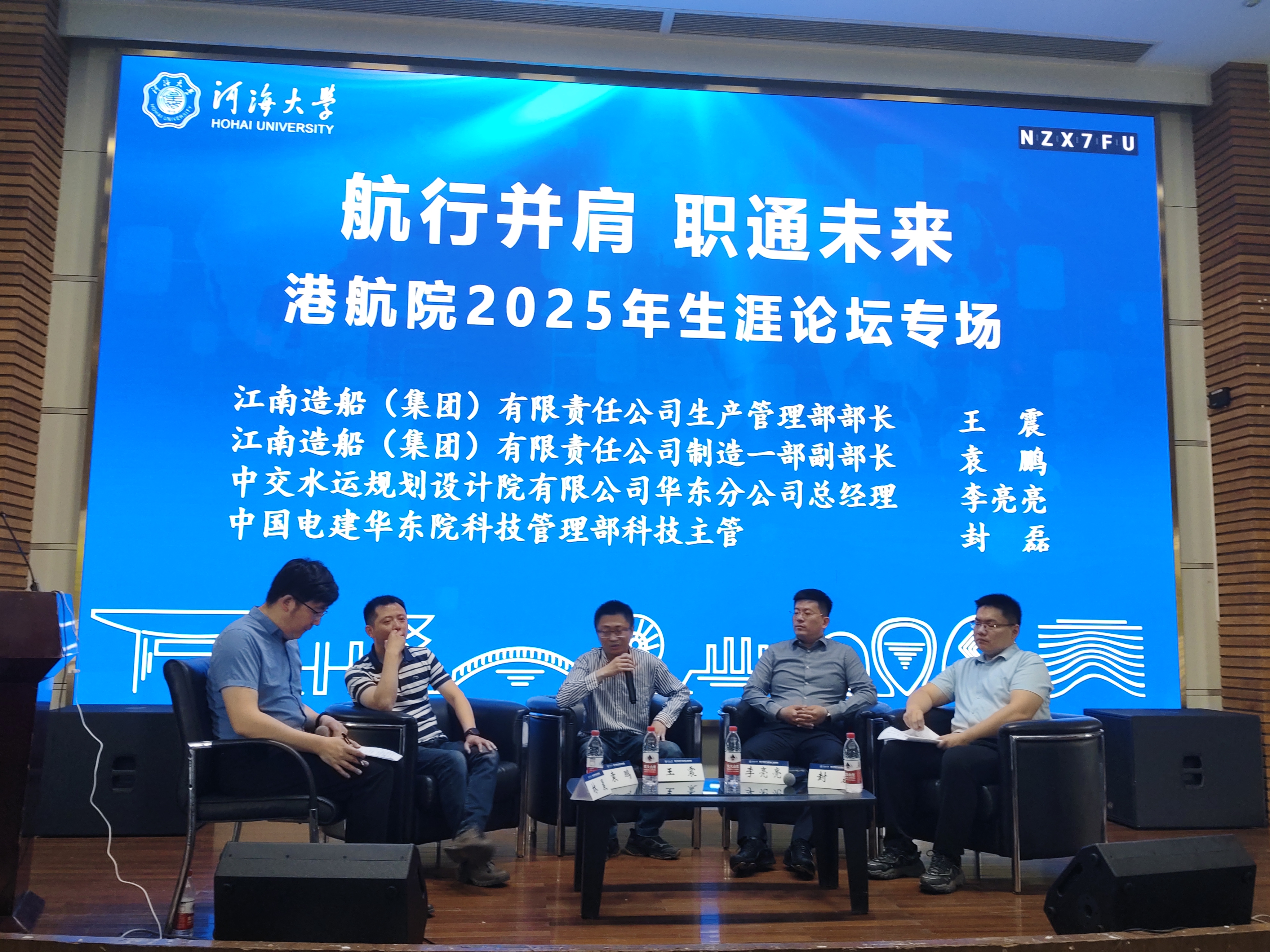 2025年4月19日,港航院第三届“航行并肩 职通未来”生涯论坛在江宁会议中心举行,港航院副院长管大为、港航院党委副书记王玲、船舶与海洋工程系主任汤冬、研究生辅导员林凡以及2024级全体本科生参加活动。活动由2024级辅导员林晨主持。