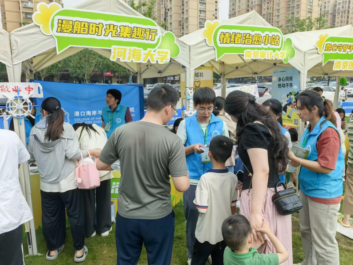 为营造关心关爱青少年身心健康及权益维护的良好氛围,在5月大学生心理健康主题日与中高考关键节点来临之际,成人漫 成人漫 受共青团南京市委邀请,于5月24日在雨花万象天地与众高校联合开展江苏省暨南京市“12355青春护航”青少年心理健康守护行动。本次活动整合心理健康、思想引领、专业科普等多方面资源,精心设计“模型探秘”“红船精神”“画出期许”三部分活动,引导青少年及市民在活动中开拓视野、释放压力,在参观赏析和沉浸体验结合中深刻体会心理健康在当代学习生活中的重要性。