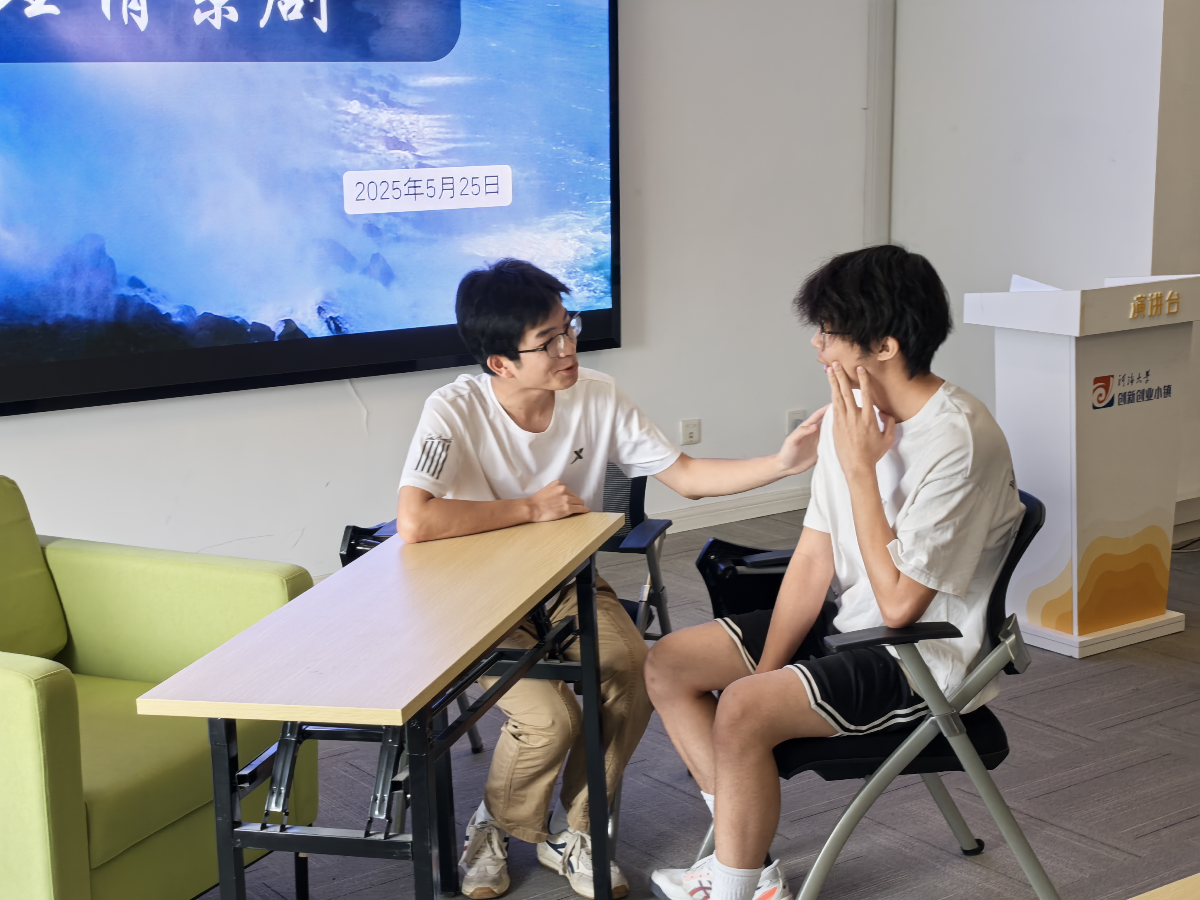 接着是心理情景剧表演环节,两组同学先后主动上台,以剧本演绎或即兴发挥的形式进行表演。一方扮演辅导员,另一方扮演有“心结”的学生,情景剧主要表现了大学生常常遇到的学习、人际以及恋爱方面的问题,以一种轻松的形式引导同学们对这些问题进行思考与交流。