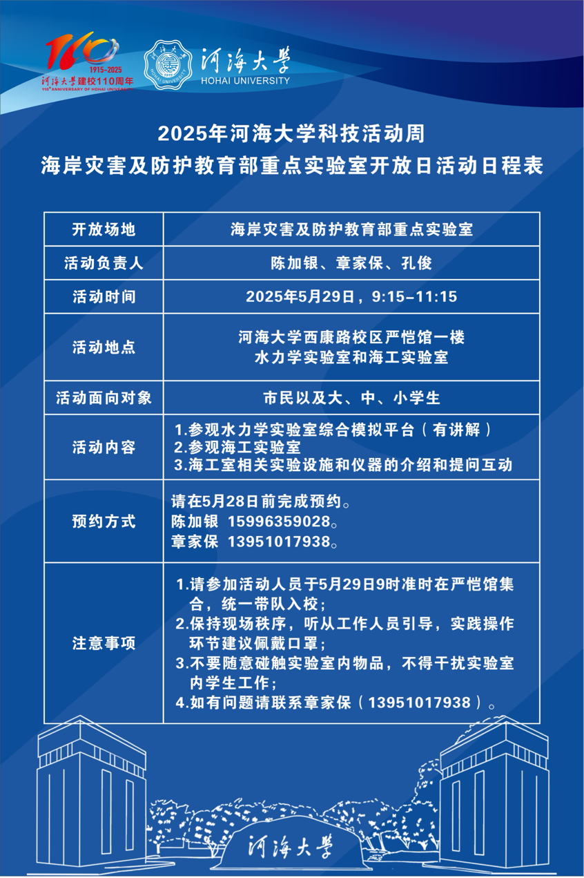 2025年成人漫 科技活动周 海岸灾害及防护教育部重点实验室开放日活动日程表