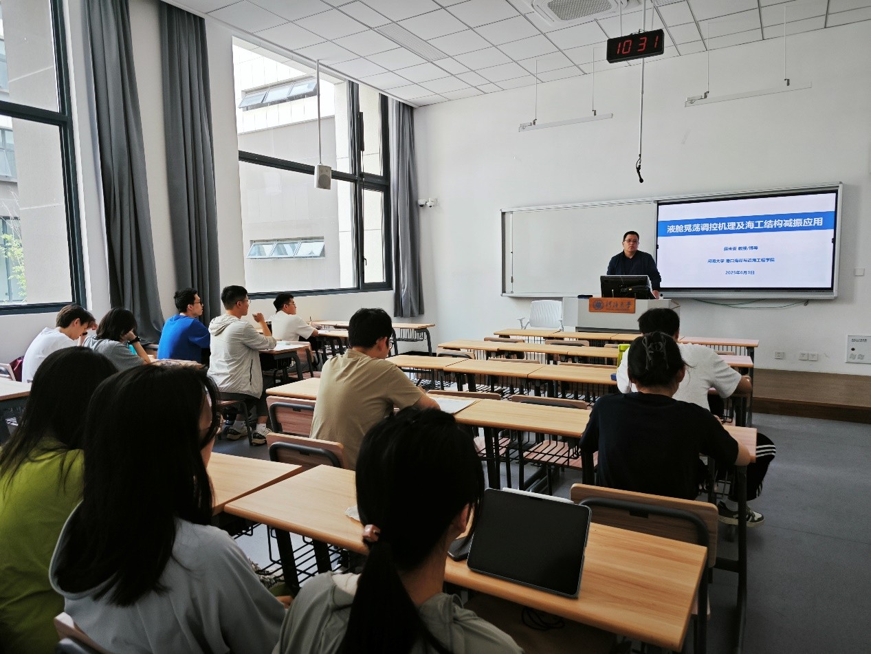 6月3日上午,成人漫薛米安教授在成人漫 常州校区带来题为《调谐晃荡阻尼器对海工平台震动控制机理研究》的学术报告,2024级研究生参加本次讲座。