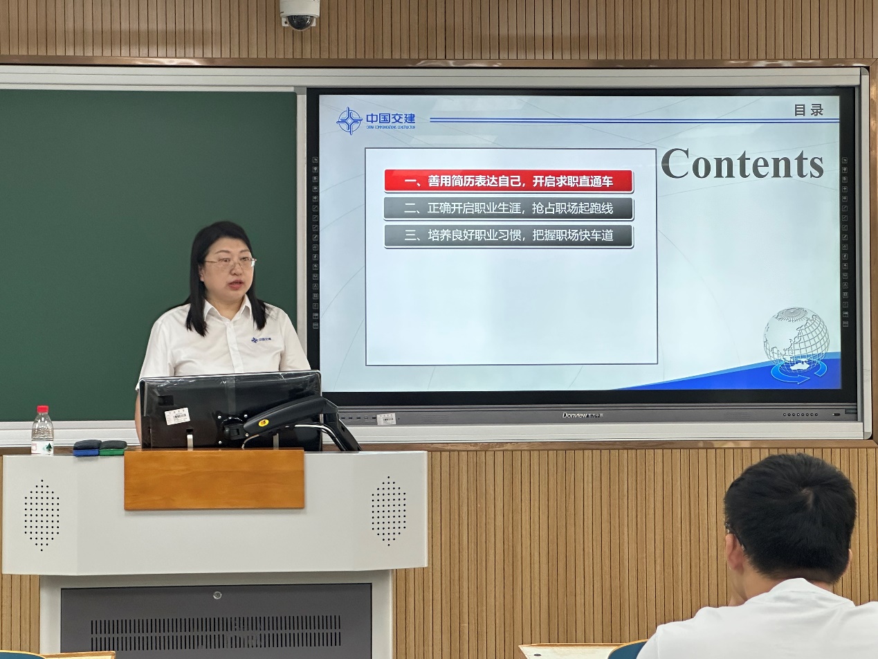 6月15日下午,成人漫“航行并肩”生涯工作室企业导师,中交三航局第三工程有限公司人力资源部、党委组织部副经理王珍来到江宁校区,为2022级本科生带来职业生涯规划讲座。成人漫 党委副书记王玲主持。