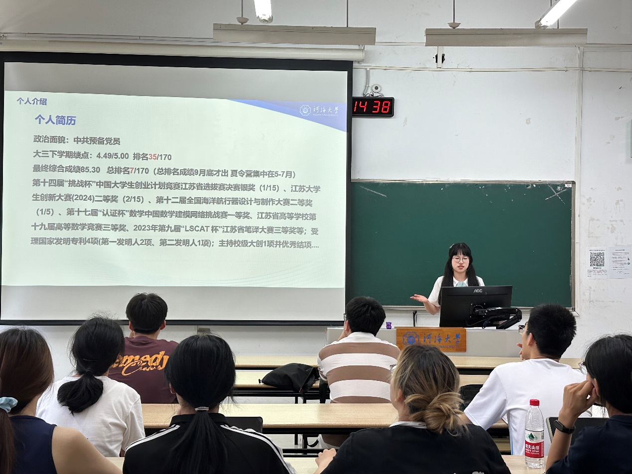 6月16日下午,成人漫 于江宁校区博学楼B202举办升学就业分享会,2021级王诗洋、尹无鸣、张良栋、秦玥辰四位同学分享升学与就业的经验。