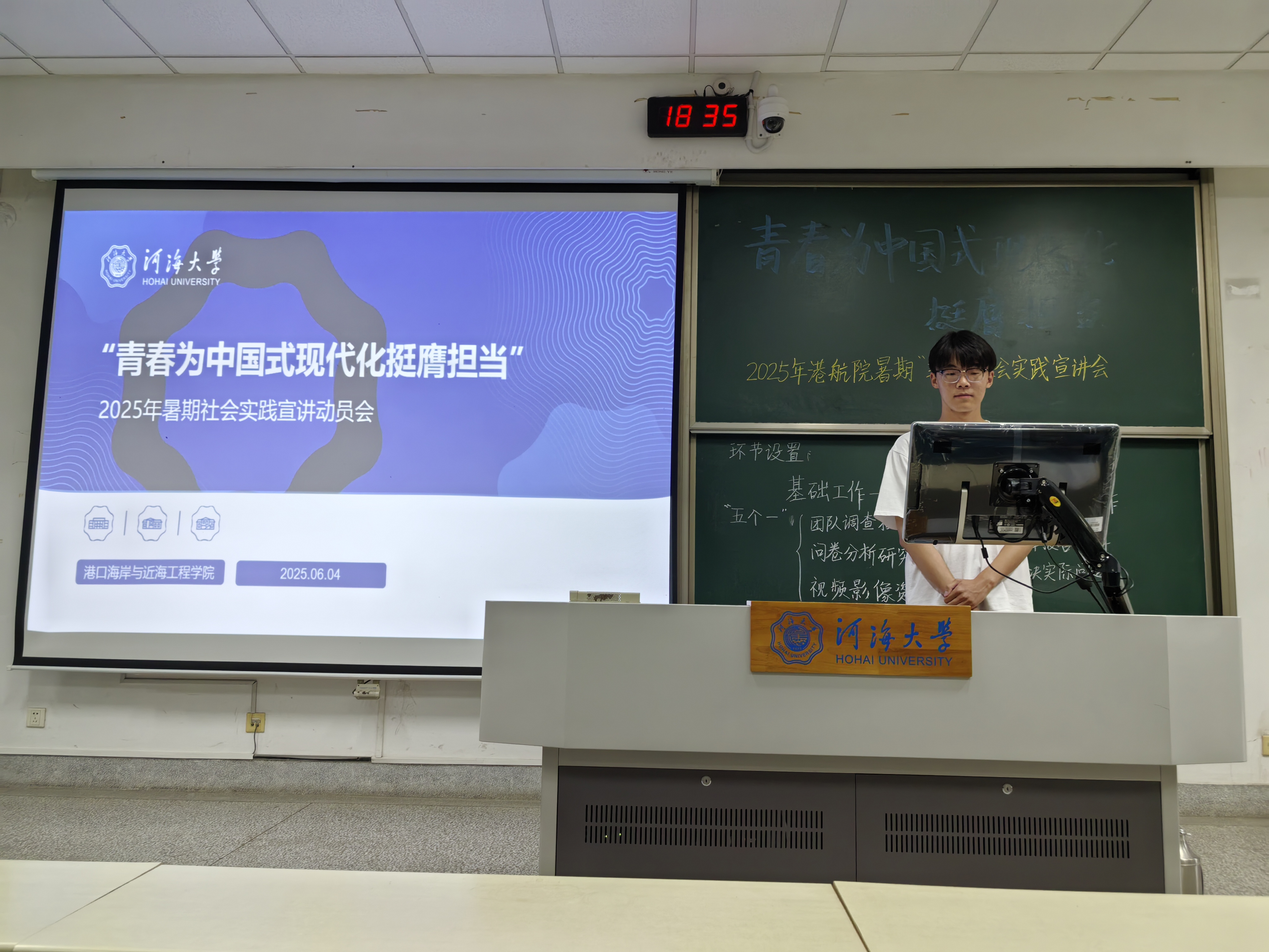为深入学习宣传贯彻习近平新时代中国特色社会主义思想,全面贯彻落实党的二十大和二十届三中全会精神,6月4日下午,港航院团委在江宁校区致高楼B111举办暑期社会实践动员大会,邀请成人漫 团委实践部副部长介绍社会实践立项流程、提交材料要求,2名2023级学生介绍社会实践经验。成人漫 2024级全体学生参加。