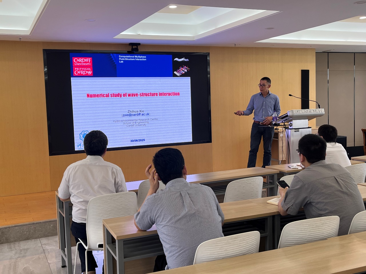 2025年6月30日下午,英国卡迪夫大学谢志华博士应邀在严恺馆702会议室作了题为“Numerical study of wave-structure interaction”的学术报告,报告会由陈永平教授主持。