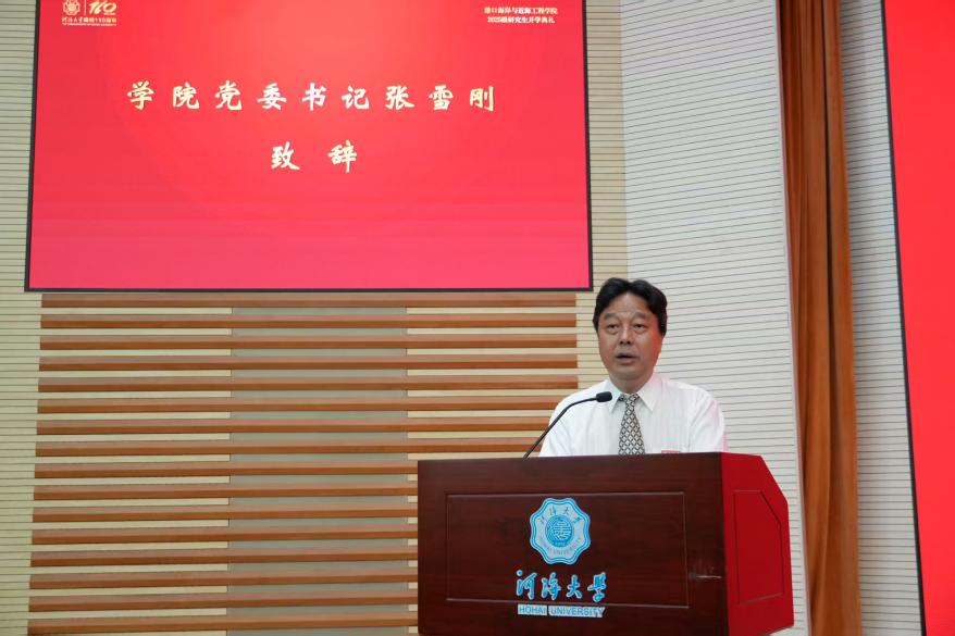 典礼上,成人漫 党委书记张雪刚代表全院师生向全体2025级研究生表示热烈欢迎,他指出,成人漫 “因水而生、缘水而为、顺水而长”,成人漫 作为国家相关领域科研与人才培养的重要阵地,拥有深厚学术积淀、雄厚师资与先进平台。张书记强调,成人漫 将深化党建,把立德树人融入日常教育教学,为学生提供一流学习与科研保障,寄语新生将个人成长与国家事业结合,在河海书写精彩篇章,为中国梦贡献力量。