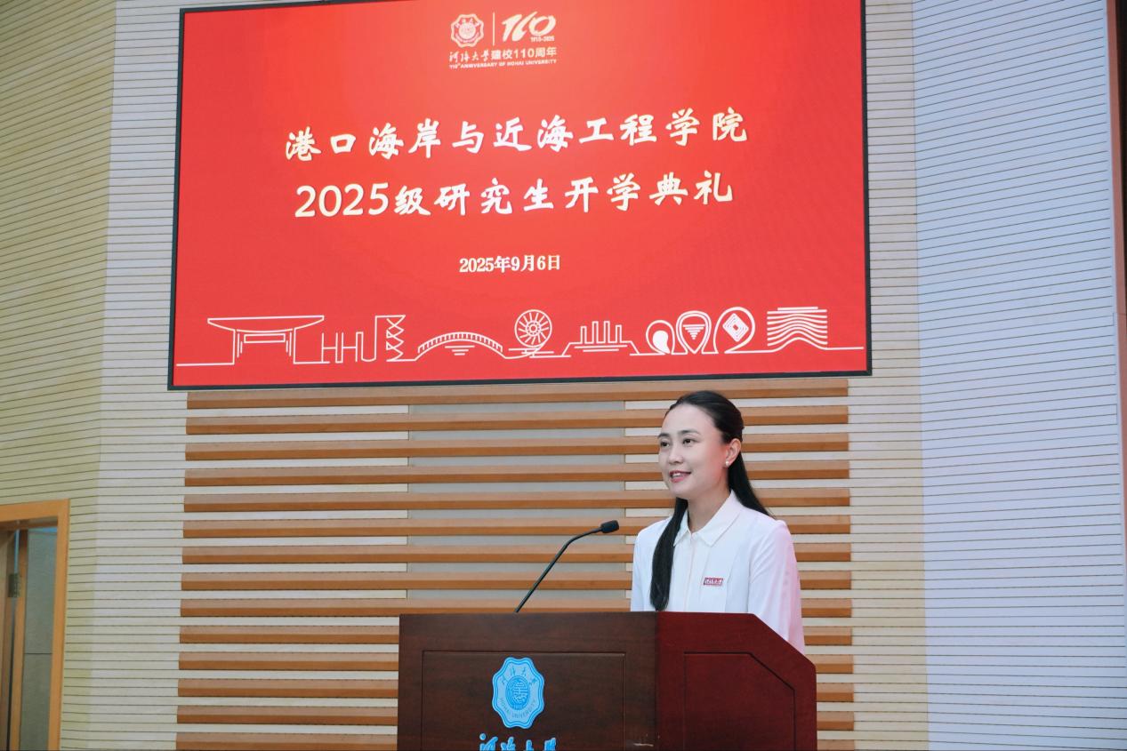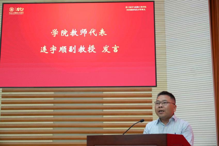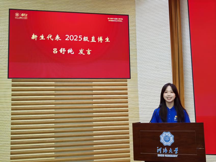 新生代表、2025级直博生吕舒纯表示,来自各地的新生因关切祖国水运与海岸带发展汇聚河海,成人漫 对大家而言既是学业新起点,也是精神“归乡”。吕舒纯分享自身对港航工程的探索经历,强调港口海岸与近海工程需“力系自然、理实交融”,呼吁同学以校训为指引,助力民族复兴。