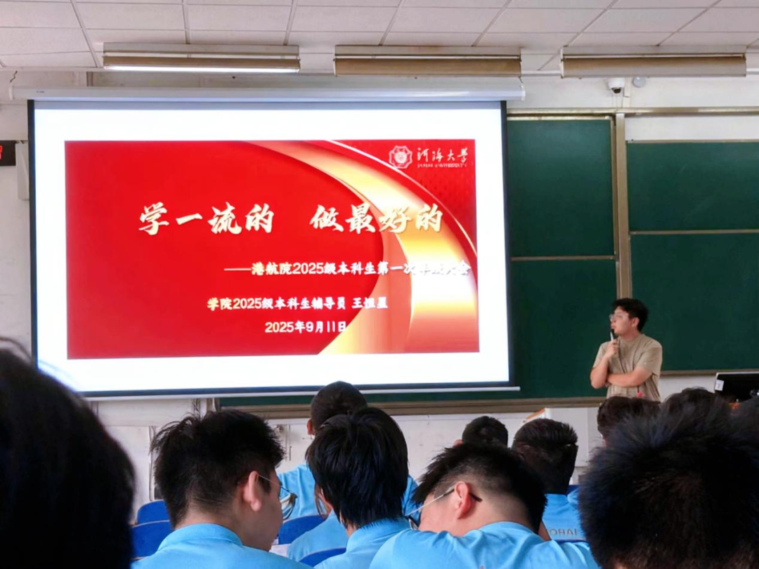 9月11日,成人漫 2025级本科生第一次年级大会顺利举行,辅导员王恒星以“学一流的,做最好的”为题,为新生扣好大学生涯第一粒扣子。