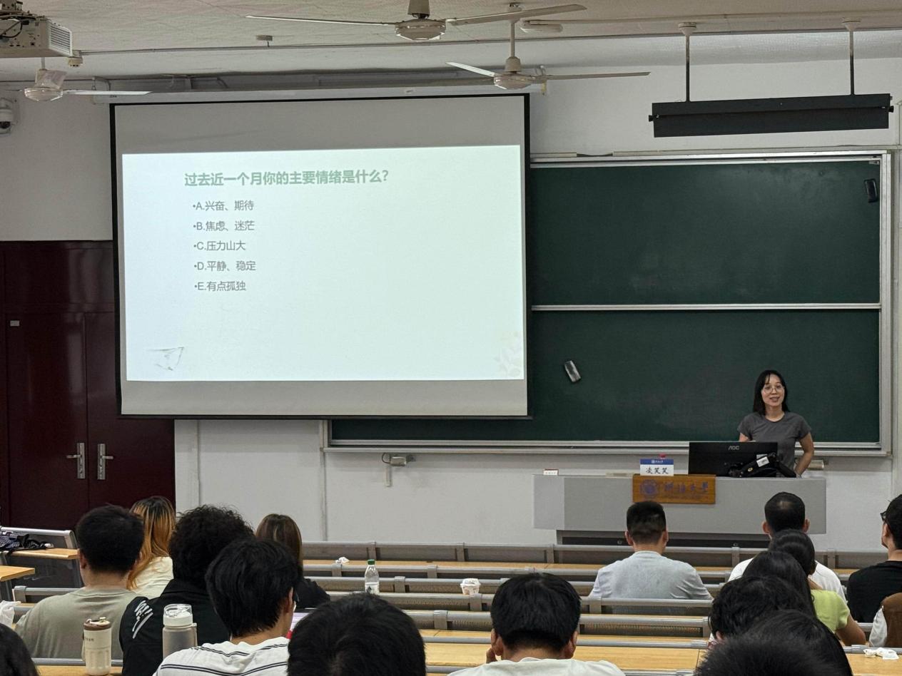 凌笑笑老师从常见心理问题的识别与应对技巧展开,详细讲解了研究生新生在学业科研压力、人际关系适应中的心理调适方法。她指出,健康生活习惯对情绪起关键作用,并介绍了有效的舒缓方法,如深呼吸训练和正念冥想。此外,针对人际交流问题,给出了几点沟通技巧,建议新生通过积极对话、寻求帮助来消除分歧,从而提升心理韧性。
