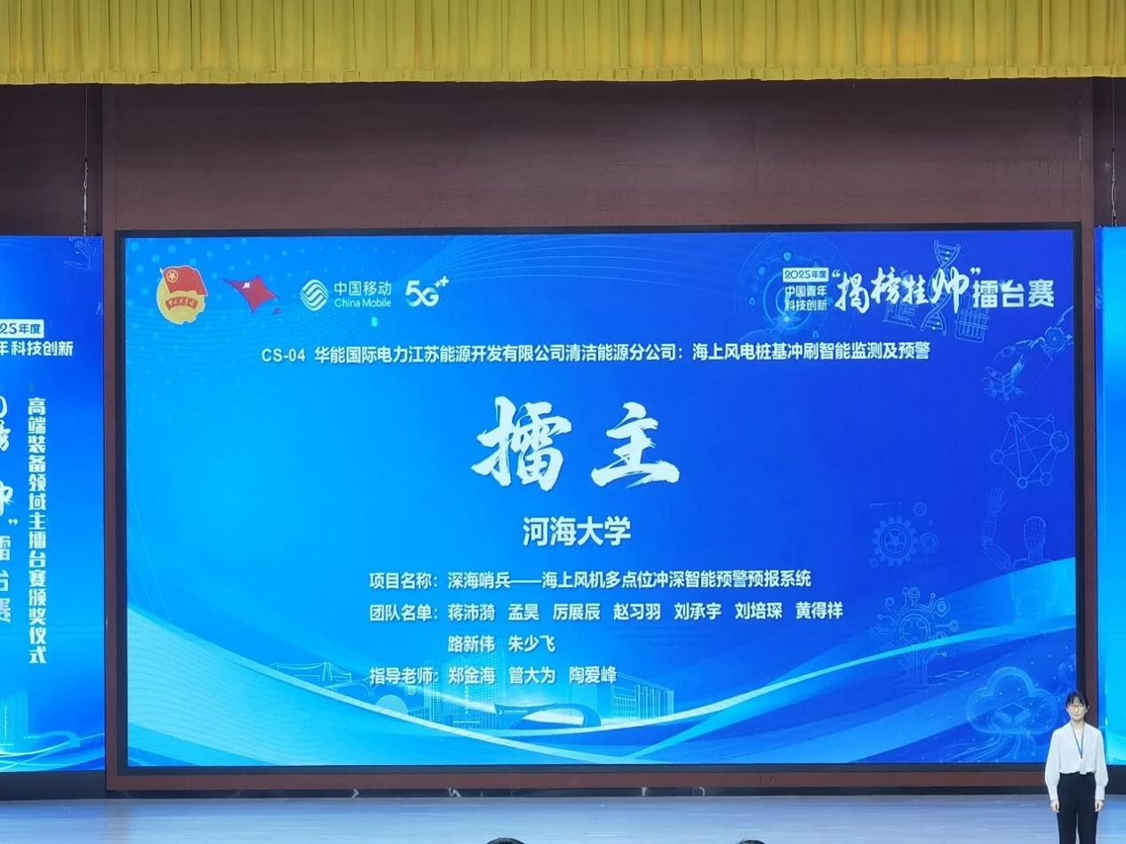 10月14日,第十九届“挑战杯”竞赛2025年度中国青年科技创新“揭榜挂帅”擂台赛(高端装备领域)在长沙落幕,共有来自全国121所高校的303支顶尖团队、千余名师生同台角逐18项高端装备“卡脖子”榜题。港航院项目《深海哨兵——海上风机多点位冲深智能预警预报系统》荣获全国“擂主”,特等奖第一名,在“挑战杯”全国大学生课外学术科技作品竞赛中实现新突破。
