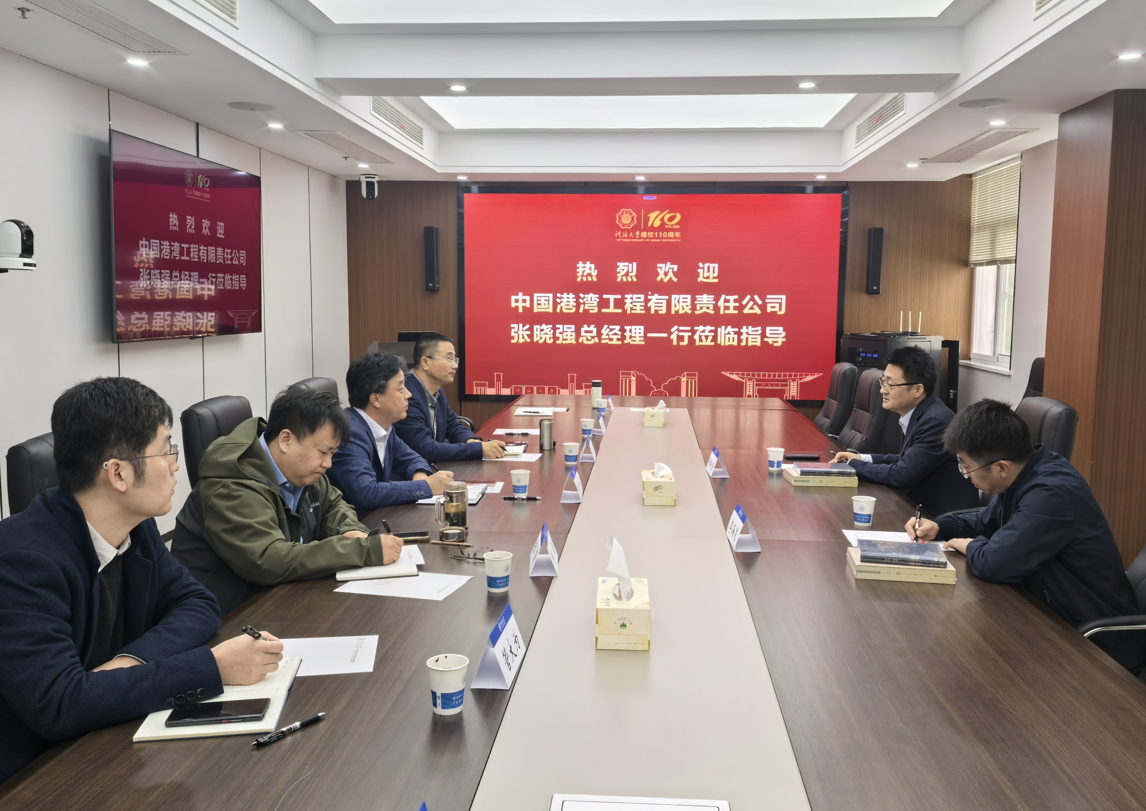 成人漫 建校110周年华诞之际,为进一步深化校企合作,共谋发展新篇,10月26日,中国港湾工程有限责任公司总经理张晓强、办公室主任李海泉一行来院座谈交流。成人漫 领导班子全体成员出席座谈会,座谈会由成人漫 党委书记张雪刚主持。