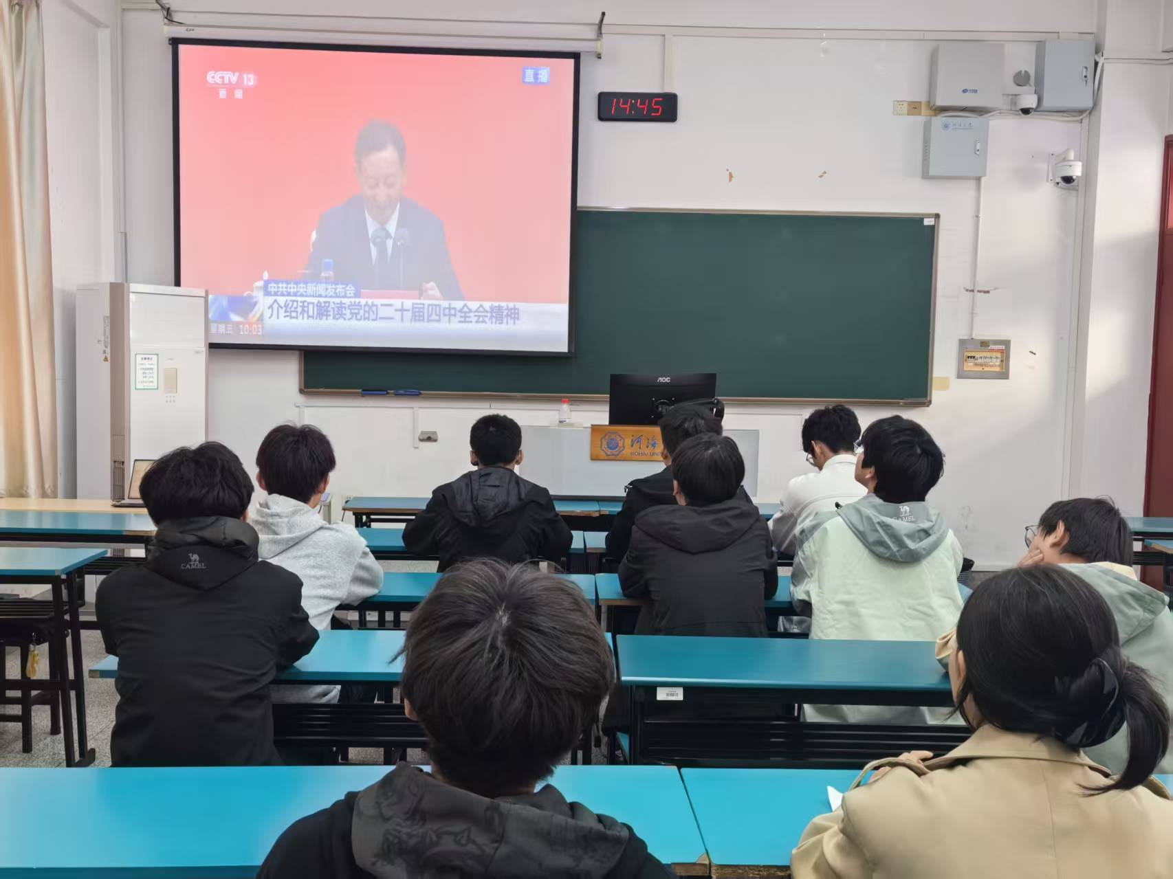 会议第二部分,组织学习党的二十届四中全会会议精神。主持人首先对全会基本信息作了介绍,指出我党凝聚同心,绘制未来蓝图,此次全会起到承上启下的重要作用,同时会议总结了推进中国式现代化的六个“坚持”。随后,全体同学观看了党的二十届四中全会相关视频,更加深入地了解了此次全会的重要意义和深远影响。