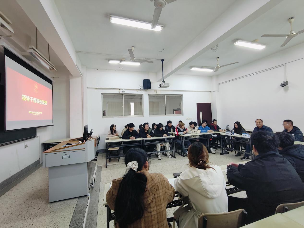 125日,领导干部联系班级座谈会在西康路校区闻天馆406举行,党委巡察工作办公室主任曹继平、2023级港航4班班导师孙阳、辅导员廖芳艺以及2023级港航4班全体成员参加。