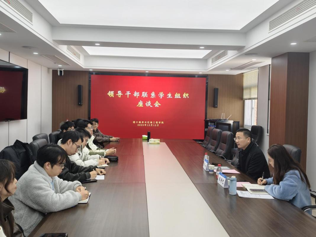 12月12日下午,成人漫 组织领导干部联系学生组织座谈会,学院院长龚政、团委书记廖芳艺、港航院研究生会主席团及部门负责人参加本次会议。