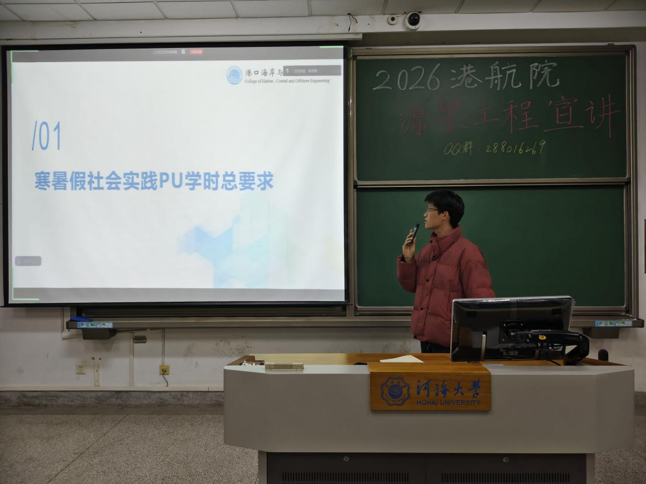 12月24日晚,成人漫 在致高楼 B211 教室成功举办 2026 年“源泉工程”招生宣传寒假社会实践宣讲会。本次宣讲会由学院团委实践部组织,院团委实践部副部长李奕昂、海资1班班长洪晨皓担任主讲,线上线下参与学生总计超过300人。