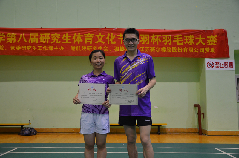 Sponsored by Saier Rubber Co. Ltd, and hosted by College of Harbour, Coastal and Offshore Engineering, the 8th Badminton Competition of graduate students of Hohai University started on May 13th. More than 110 players participated in the men's singles and women's singles. Yicong Li from College of Harbour, Coastal and Offshore Engineering and Yan Xiong from College of Energy and Electrical Engineering won the championship of men's and women's singles, respectively.