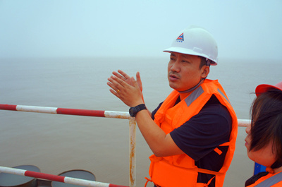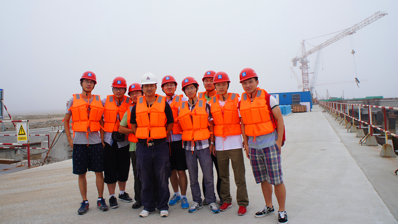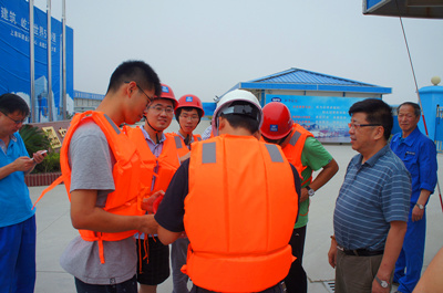 7月9日早晨6点,队员们早早起床,赶赴洋山深水港。刚到洋山港,驻工地的上海水运工程监理公司的葛总就热情地接待了大家。葛总先带领队员们来到他的办公室,给大家讲述洋山港的开发历史和现在的发展状况。在葛总的悉心讲解下,晦涩难懂的专业知识变得简单明,原本对于我们来说还十分神秘的港口就在我们心中被一步步搭建起来。了解完洋山港的工程之后,葛总提议去洋山四期工程的现场参观一番,队员们欢呼雀跃。现场的参观让队员们对现代化港口有了更直观的了解,对港口的基本结构和运营模式也有了一定的认识,为日后的学习做好了铺垫。同时,队员们惊叹于洋山港先进的自动化技术,明白只有不断谋求革新才是港口发展的基础。