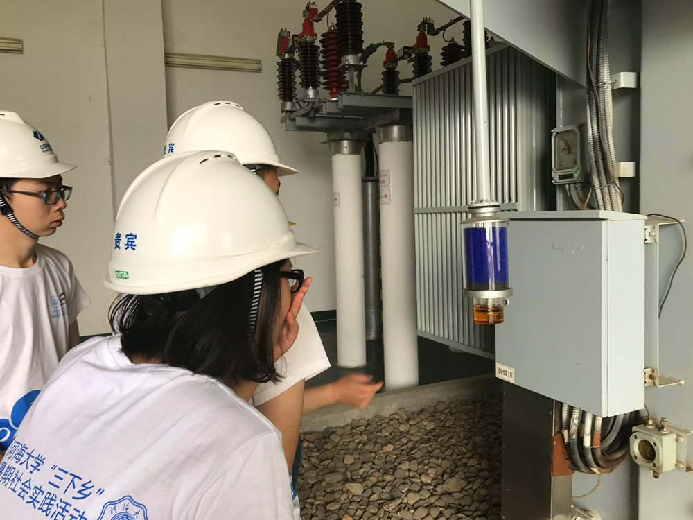 刘政委和冯部长带领实践团参观了风机制造厂、中水电集团如东新能源有限公司和华能江苏风电分公司的两个海上风电场,队员们从制造、建设到使用全方面了解了海上风机。在风机制造厂,队员们近距离地见识到这些将被安置于海上的庞大设备,对于风机的各部分结构也有了更深的认识。在两家风电场,队员们参观了场内设备和投入使用的风机。负责人带领队员们浏览了从监控所有设施的中控室,到用于检验故障的继电保护室,到负责变压的主变室等电厂内部构造,并详细介绍了风机所产生的电能如何在风电场经过变压等处理输入电网,以及风电场自身的运行情况和常见问题。队员们还获得了前去潮间带参观正在运行的风机的机会,当天适逢天公作美,可见一行行排列井然的风机在强劲的海风中平稳地转动。队员们在现场积极询问有关动力响应等问题,也得到了负责人细致认真的回答。海上风电场参观对调研团意义非凡——既见识到了风机和风电场的运行实情,又在工作人员的讲解下获得了丰富的专业知识。