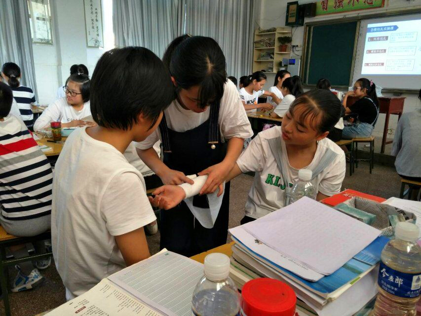 紧接着进入了教学环节。在日常教学工作中,各位实践队员不仅精心安排了语文、数学、英语等趣味文化课程,还为这里的孩子们准备了中国传统文化、心理健康、急救知识、信息技术和音乐鉴赏等丰富的兴趣课程,在增长知识的同时,以高效学习,发散思维,拓宽视野为三大辅助目标。在所有课程的准备过程中,我们发现了很多需要细心琢磨和考量的地方。作为孩子们真正的老师,做到说对每一句话,规范每一个细节,站在学生的角度考虑问题,切身实际地定制最佳教学方案,确保教学内容促进青少年心理健康发展、知识层面正向拓宽。在课堂之余,我们还认真与学校校长和班主任学习、沟通和交流,了解当今中学阶段教育所面临的困惑和窘境,并依照学校实际情况和农村教育特点,深入剖析学校教学环境和教学制度,做出最合理,最规范的短期支教教学管理方法,让每个参与此次支教活动的孩子们收益。