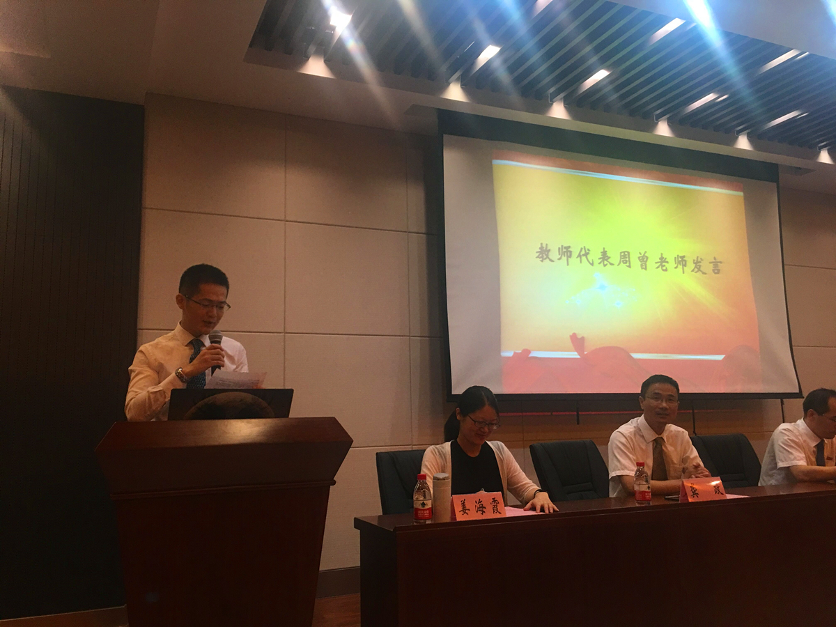 典礼在庄严的国歌声中开始。郑金海院长首先代表学院对2017级新生的到来表示热烈的欢迎,同时郑院长也对新生提出了三点期望:1、有上善若水的道德和品质,学会做人。2、有水滴穿石的毅力和韧劲,学会做学问。3、有海纳百川的胸怀和气魄,学会做事情。随后,教师代表周曾老师结合自身在成人漫 的成长经历,希望新生能够树立目标,勤奋刻苦、不断进取。新生代表彭泽曦同学的献辞表示将用自己的青春和理想,书写下属于他们自己的青春故事。
