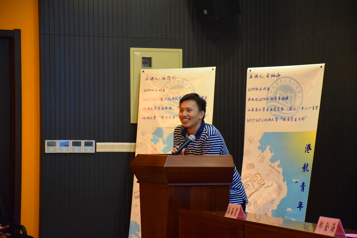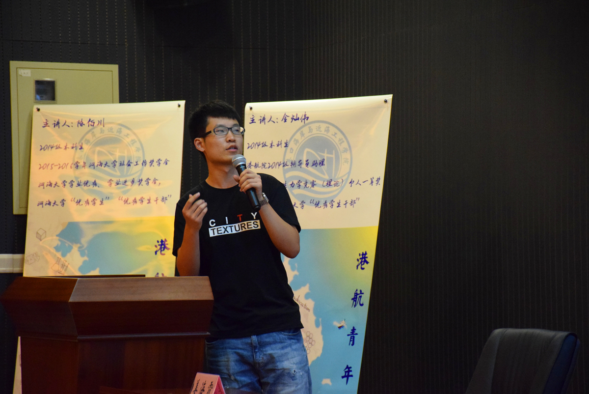 2017年9月10日下午,港航院在思源楼107举办了港航青年说活动。活动邀请到了陈佰川、陈雪、王家奇、金灿伟、黄健钧五位优秀的学长学姐来和2017级的新生分享他们的学习心得、学生工作的经验以及科创竞赛之路。